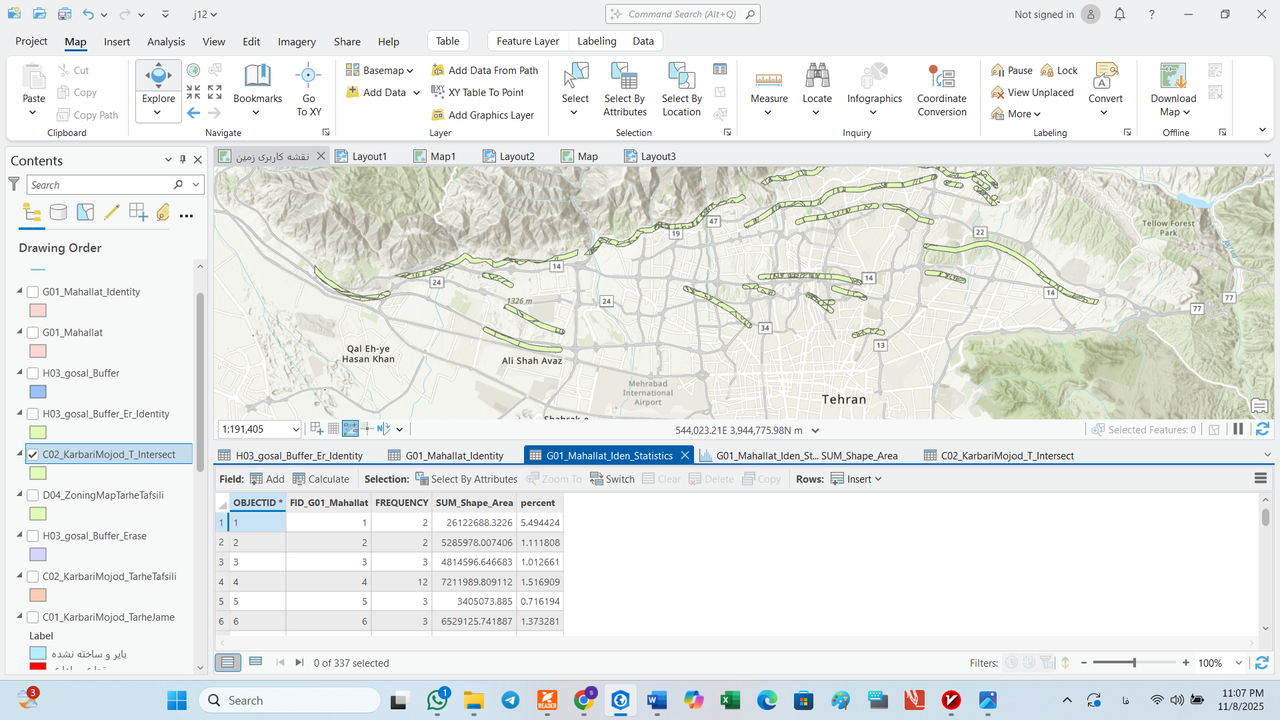 تمرین: میخواهیم بدانیم چند درصد از محلاتمان روی گسل قرار دارد