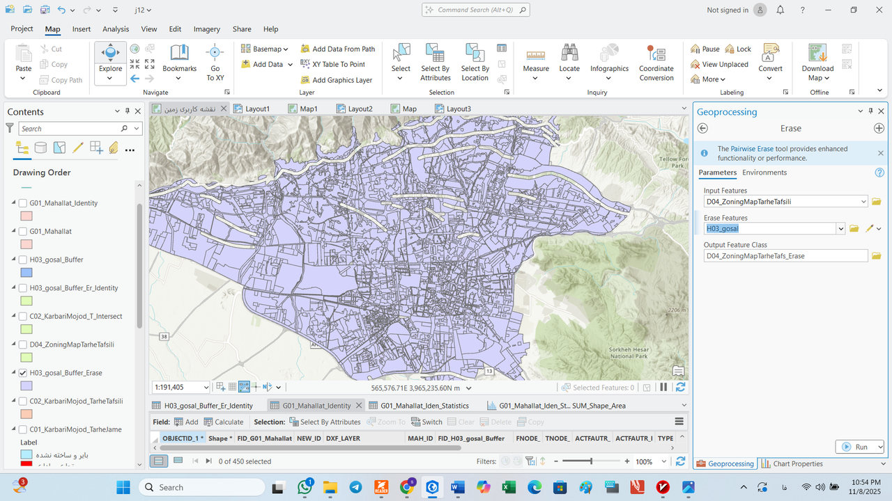 در این مجموعه با ابزار erase میخواهیم حریم گسل را از لایه طرح تفصیلی یرداریم و به نوعی پاک کنیم: